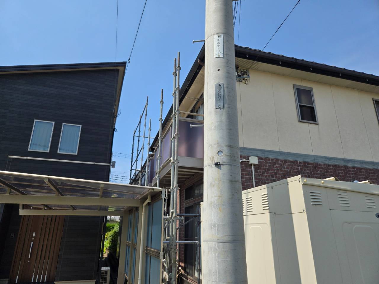 足場仮設 2025/08/19 お疲れ様です。 昨日長泉町の現場足場仮設でした。 今日高圧洗浄してきたので明日からシーリング作業に取りかかります(((^^;) 明日も頑張っていきましょう\(^_^)/ 静岡市清水区住宅、アパート塗装は榮信塗装にお任せください\(^_^)/ 施工日誌