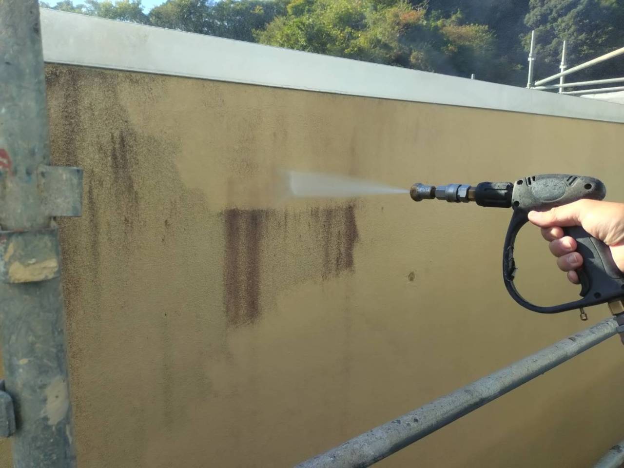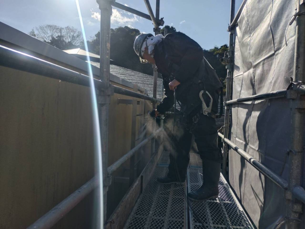 高圧洗浄 2025/11/21 お疲れ様です😆🎵🎵 昨日と今日で外壁、屋根の高圧洗浄やってます。 夕方になるとビショビショで寒い😱 来週から下地補修に入ります。 アパートの一件も今日完了しますし先月末から取りかかっていたマスチックの現場も土曜日には完了しそうです。 まだアパート4件ありますが なんとか踏ん張って頑張ります😖💦 静岡市清水区住宅、アパート塗装は榮信塗装にお任せください\(^_^)/ 施工日誌
